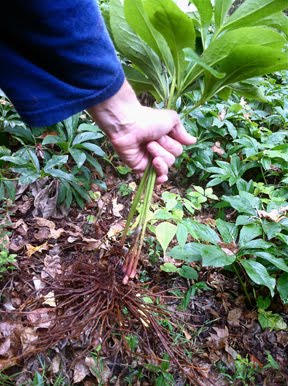 These are examples of the mature 4 year old Lenten Roses we are shipping this month, and of course the garden cat Saphire!